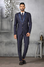 Blue Rayon Engrossing Coat Suit