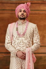 Readymade Cream Art Silk Fabric Royal Hand Work Shrewani