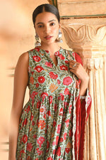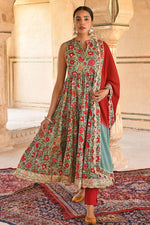 Green Exquisite Cotton Printed Anarkali Suit