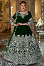 Sangeet Wear Velvet Fabric Green Magnificent Anarkali Suit