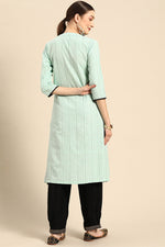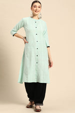 Cotton Fabric Sea Green Color Kurti In Exceptional Casual Look