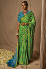 Amazing Weaving Work On Green Brasso Fabric Saree