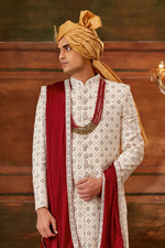 Cream Georgette Fabric Magnificent Hand Work Shrewani