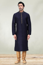 Fancy Navy Blue Color Art Silk Fabric Function Wear Readymade Kurta Pyjama For Men