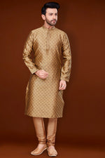 Golden Color Jacquard Fabric Attractive Kurta Pyjama For Men