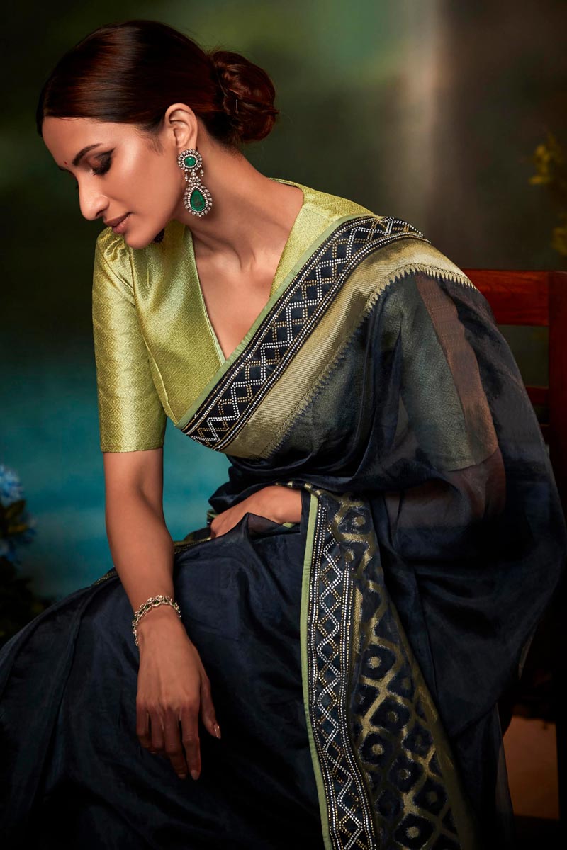 Navy Blue Color Art Silk Fabric Superior Fancy Work Saree