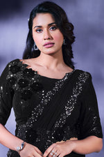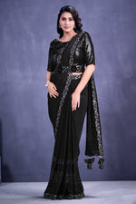Stylish Border Work On Black Color Saree In Lycra Fabric