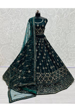 Wedding Wear Dazzling Teal Color Lehenga In Georgette Fabric