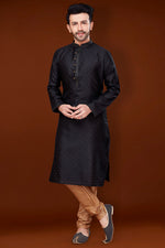 Black Color Jacquard Fabric Engaging Kurta Pyjama For Men