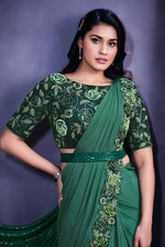 Creative Border Work On Lycra Fabric Saree In Dark Green Color