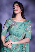 Engaging Border Work On Light Cyan Color Crepe Fabric Saree