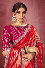 Georgette Fabric Red Color Excellent Saree With Border Work